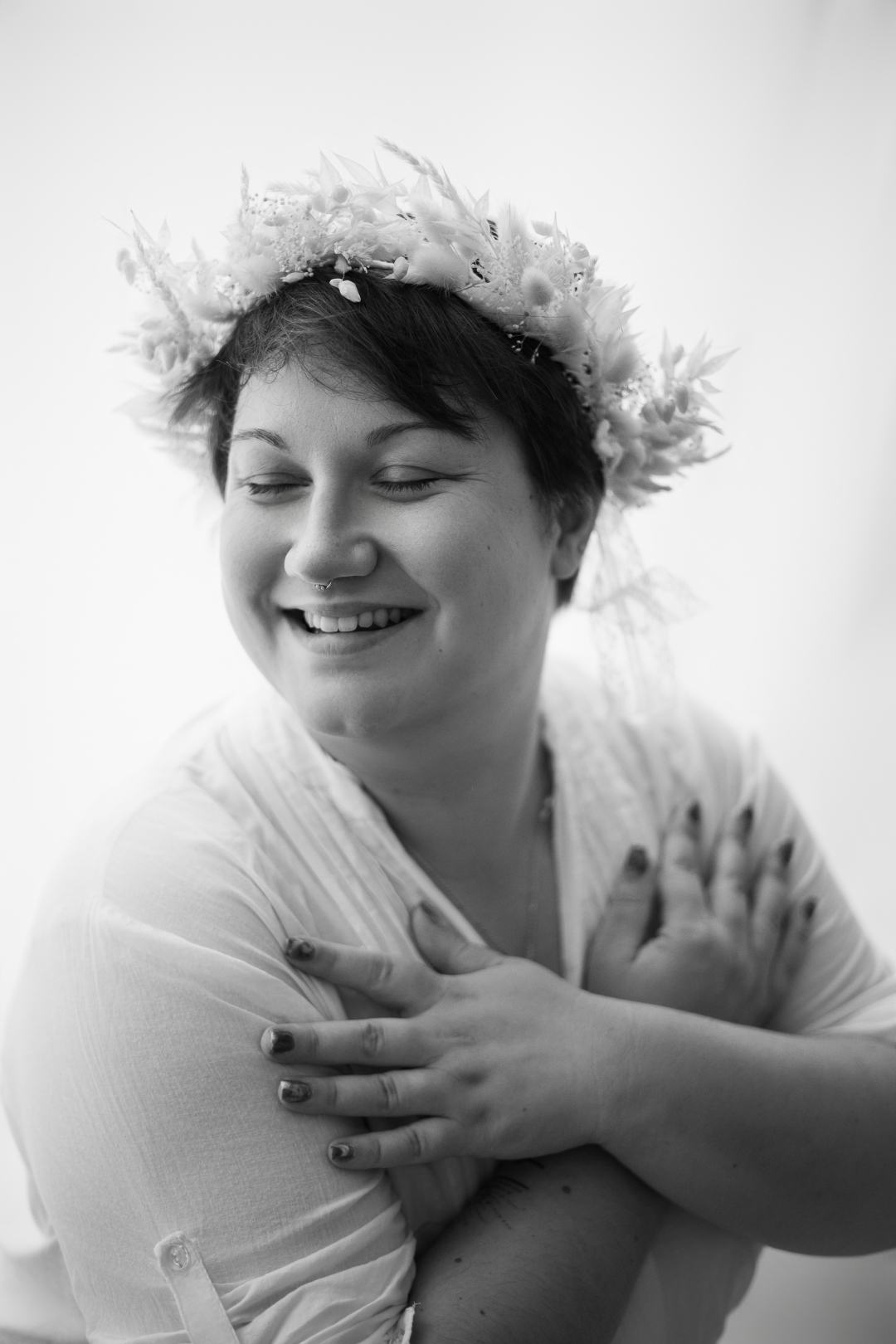 Merci également aux femmes qui ont poussé la porte du studio ce jour-là, pour leur confiance, leur courage et leur authenticité. Et enfin, merci à DFleurs au naturel qui a généreusement fourni une couronne de fleurs, apportant une touche de douceur et de poésie à cette journée.