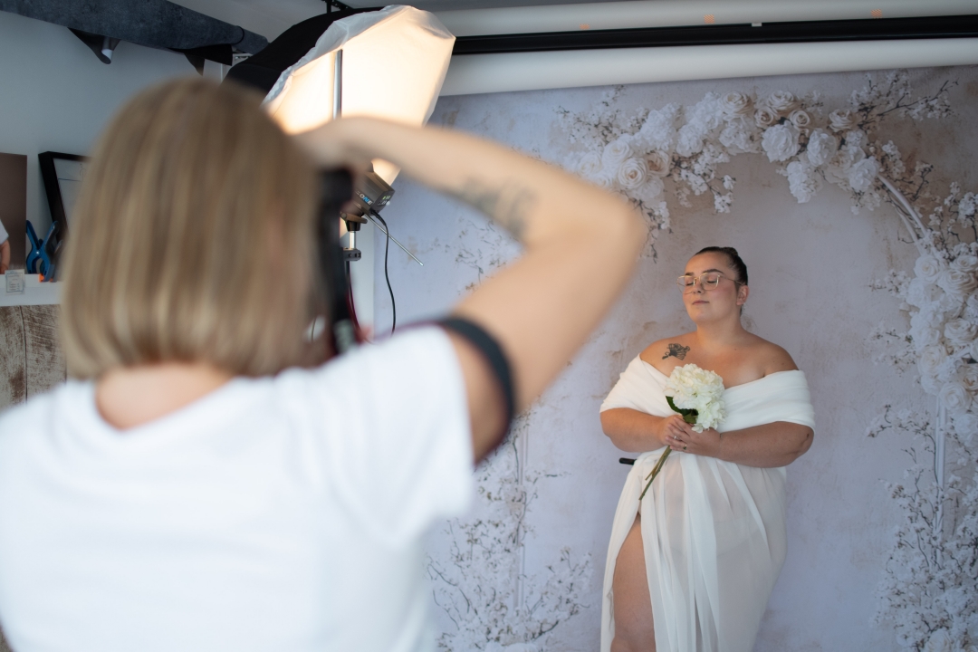 Une maquilleuse professionnelle faisait également partie de l’équipe. Certaines femmes avaient réservé l’option maquillage, d’autres non, chacune étant libre de composer son expérience selon ses envies. Ces moments avant la prise de vue étaient souvent riches en échanges, en sourires, et parfois en confidences. Beaucoup sont restées bien au-delà de leur créneau initial, simplement pour discuter, partager et profiter de cette parenthèse hors du temps.